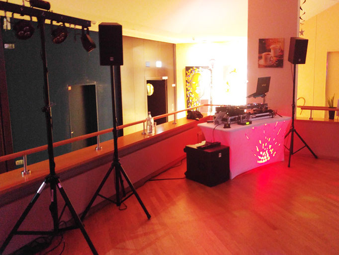 - eigenes DJ Pult (oder ein Tisch mit Tischdecke/ Husse direkt in der Location)